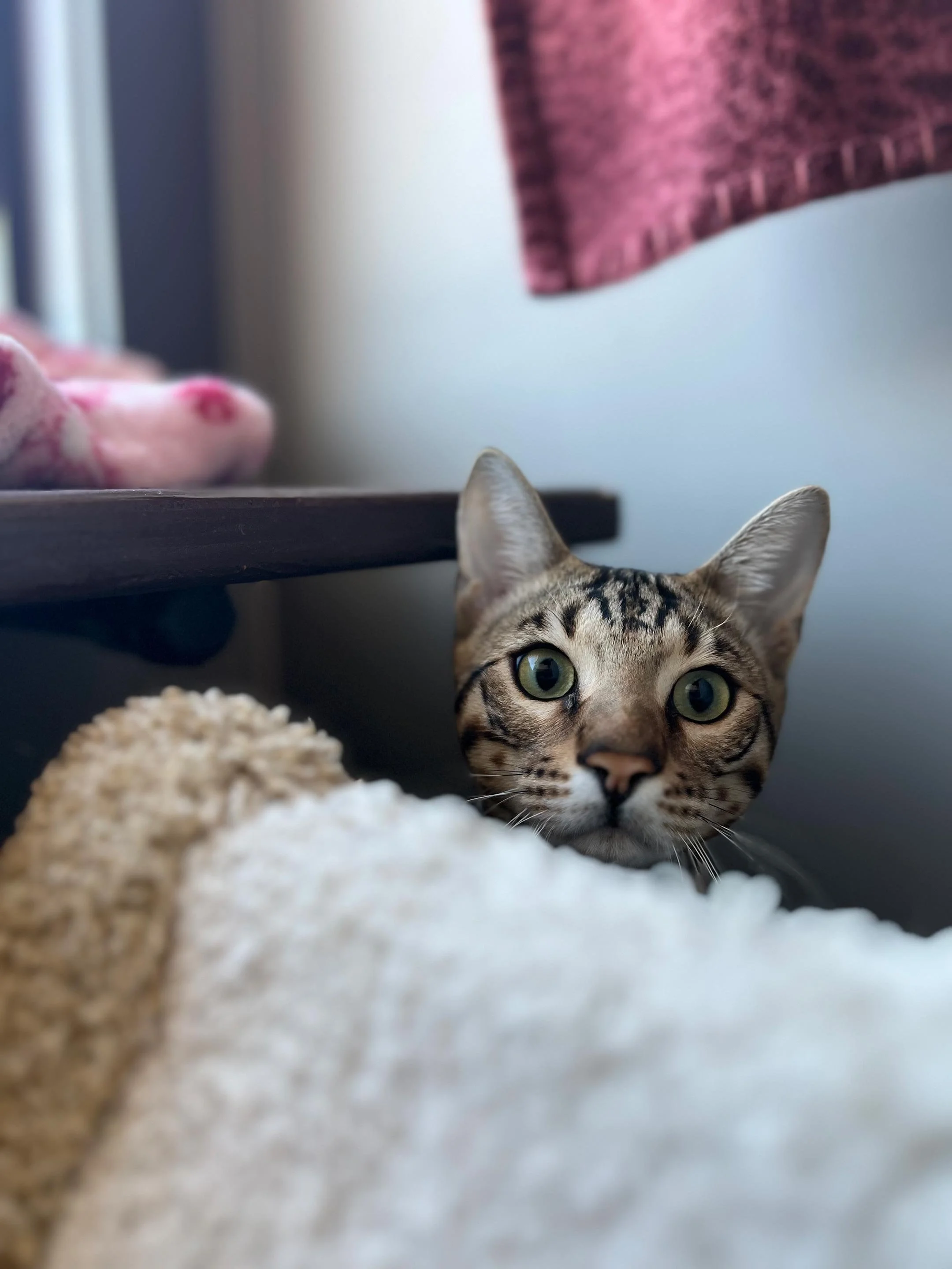 - Hiding: Cats may seek out small, enclosed spaces or hide under furniture as a way to feel secure.